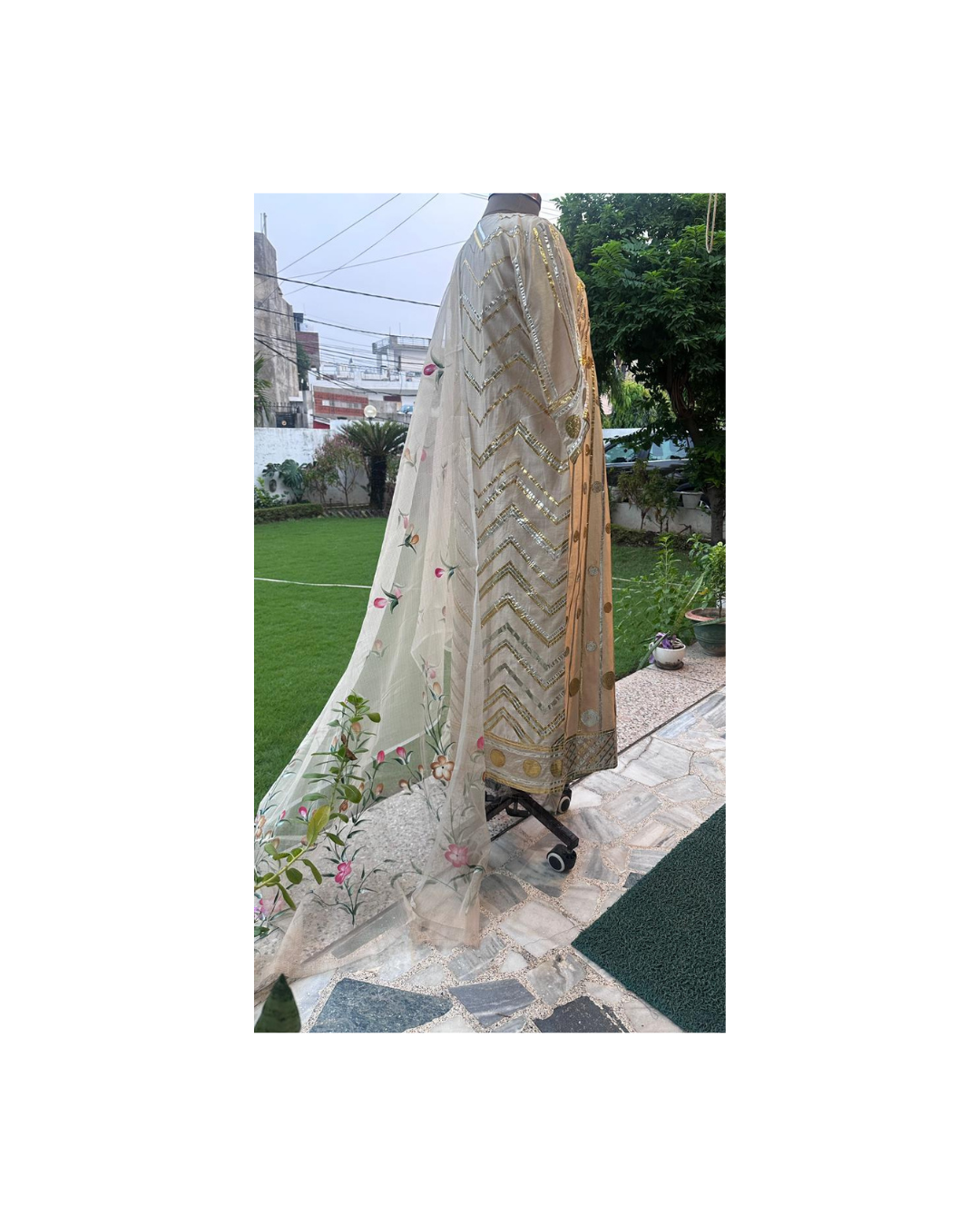 Ivory base with metallic gota detailing